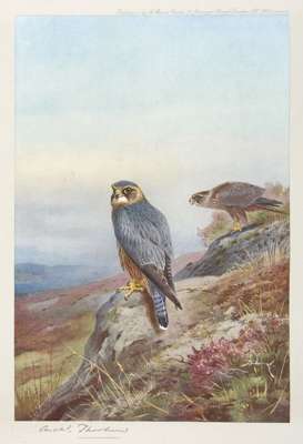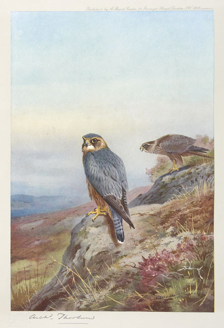 Birds of Prey. London: W.F. Embleton, 1919. First edition, folio, one of 150 copies, 12 mounted plates all signed by the artist, loosely inserted pencil sketch by the artist of a Golden Eagle [27cm by 20cm, initialed in left corner], text leaves and plates all mounted on guards, modern morocco gilt, marble endpapers, a fine copy of a rare work