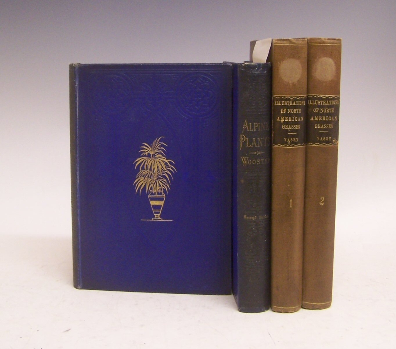 Illustrations of North American Grasses. Washington, 1893, 4to, 2 volumes, lithograph plates, contemporary cloth, rubbed, ex-library stamps to title and upper boards; Wooster, David Alpine Plants. London, 1874, second edition of first series, 4to, 2 volumes, 108 colour plates, original blue cloth gilt, faded, prize bookplate (4)