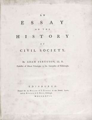 Note: A fine copy of the first edition of a sociological classic and the principal work of Adam Ferguson, Professor of Moral Philosophy at the University of Edinburgh and a leader of the Scottish Enlightenment.