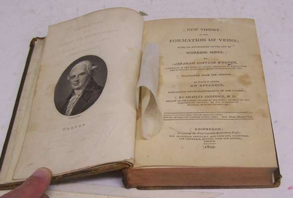 New Theory of the Formation of Veins; with its application to the art of Working Mines. Edinburgh: for A. Constable, 1808, first English edition, translated by Charles Anderson, half-title, engraved frontispiece portrait, contemporary calf, slight browning and offsetting to title, rubbed, upper hinge weak; bound with Henry Reeve's An Essay on the Torpidity of Animals, 1809