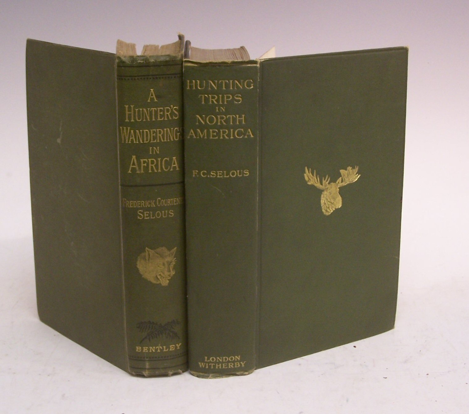 A Hunter's Wanderings in Africa. London, 1881. First edition, 8vo, illustrated, folding map, original green cloth gilt, some light foxing; Ibid. Recent Hunting Trips in British North America. London, 1907, 8vo, illustrated, original green cloth gilt, some light foxing to half title; Ibid. Sunshine and Storm in Rhodesia. London: Richard Ward, 1896. First edition, 8vo, illustrated, original cloth, zebra print endpapers, backstrip darkened, owner's ink inscription to endpaper, some foxing to page edges (3)