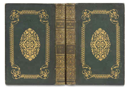 The Sportsman in Ireland. London: Colburn, 1840, first edition, 2 volumes, 12mo, aquatint frontispieces (slightly spotted, dampstained in margin), illustrations, contemporary green morocco gilt, g.e.