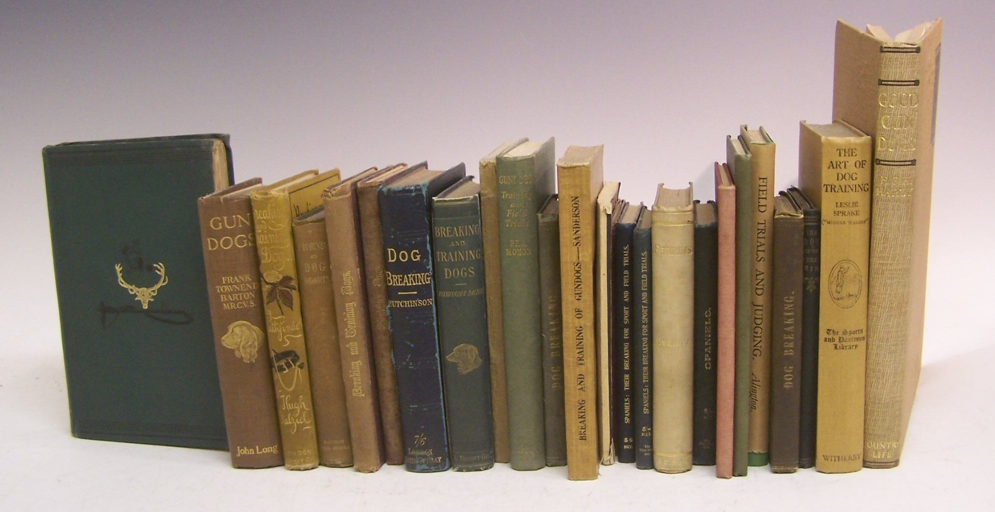 Gun, Rifle and Hound in East and West. London, 1894, 8vo, illustrated by Henry Dixon, plates, original decorative green cloth, a fine copy; Hardy, Capt. H. Good Gun Dogs. London, 1930, 4to, illustrated with dry-point etchings by G. Vernon Stokes, 16 plates, original cloth, some fading, frontispiece loose, interior clean; Barton, Frank Townend Gun Dogs. London, 1913, 8vo, plates, original cloth gilt, a very good copy; Pathfinder & Dalziel, Hugh Breaking and Training Dogs. London, 1885, second edition, 8vo, illustrated, original decorative cloth gilt, ink inscription on front pastedown, inner hinge weak; and 22 others on gun dogs and dog training (26)