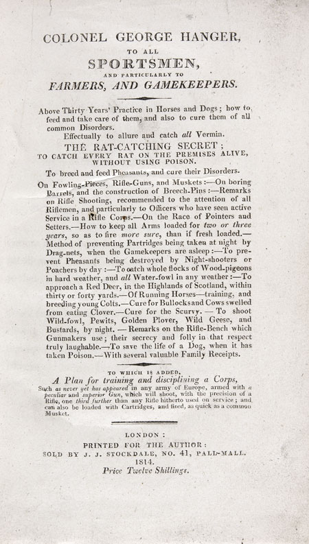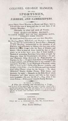 To all Sportsmen, and particularly to Farmers and Gamekeepers. London: Printed for the author, 1814. First edition, 8vo, original boards, rebacked, interior clean, bookplate