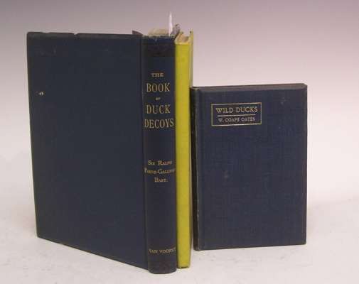 The Book of Duck Decoys. London, 1886. First edition, 4to, 14 colour plates, 2 of them folding, original blue cloth gilt, booksellers stamp to half title, some foxing to folding plates; Bolster, R.C. Driven Duck. [no place, no date], 8vo, illustrated, original green cloth, faded, interior clean; Oates, W. Coape Wild Ducks. London, 1905, small 8vo, 16 plates, original cloth gilt, very good condition (3)
