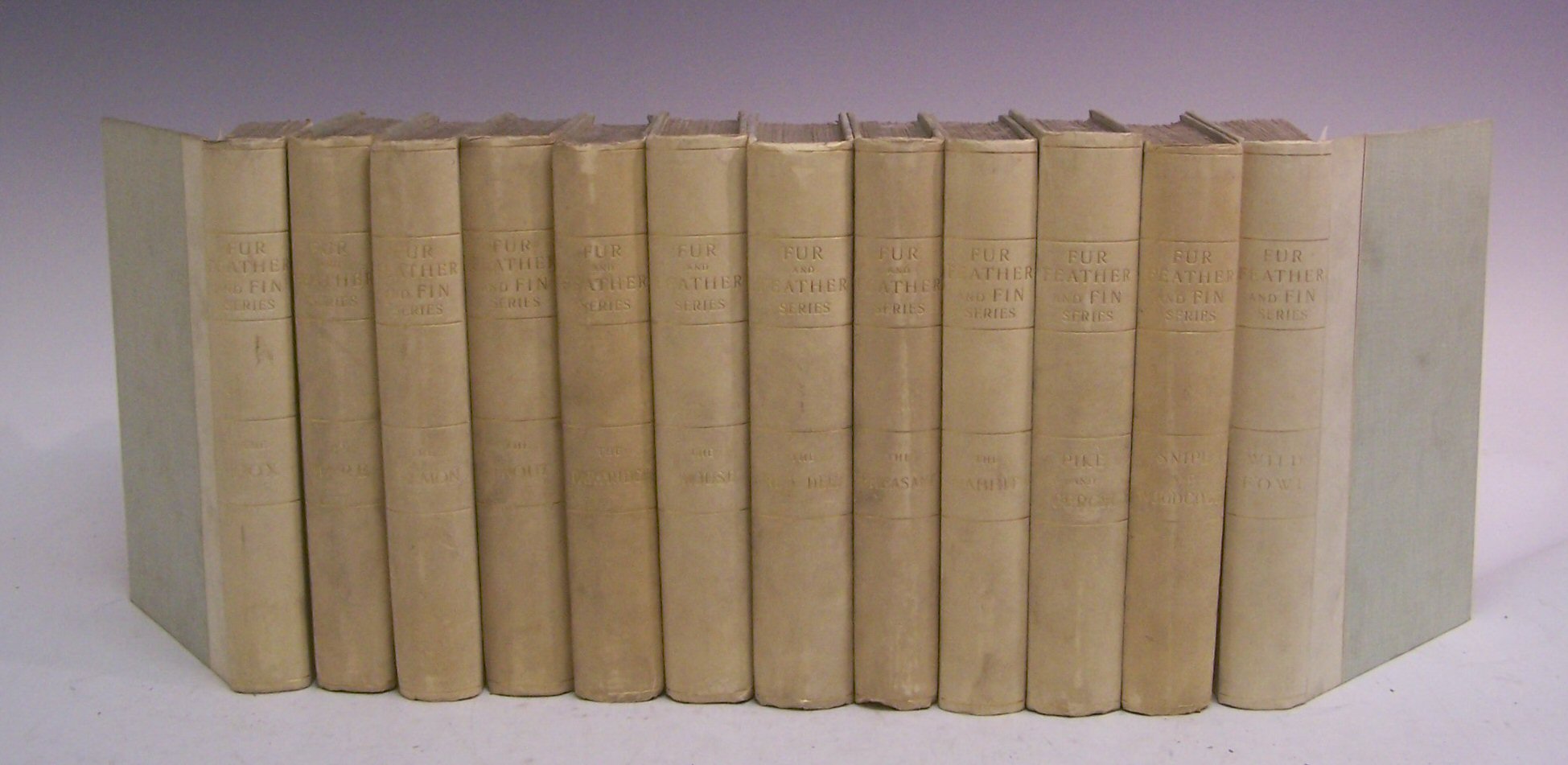 Fur and feather series. London: Longmans, Green & Co, 1893-1906, 8vo, 12 volumes, large paper copy, number 61 of 157 copies, frontispieces and vignette titles, contemporary quarter vellum gilt, some dustmarks to boards and backstrips (12)