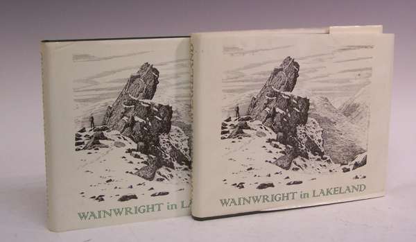 Wainwright in Lakeland. Kendal: Westmorland Gazette, 1983. First edition, oblong 4to, number 932 of copies, signed by the author, map in pocket at rear, original green rexine gilt, dustwrapper, some slight fading to wrapper, interior very clean and another 1985 copy signed by the author (2)