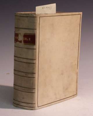 London: Bonham Norton and John Bill, 1619 [New Testament: Robert Barker and John Bill, 1620]. 4to, woodcut titles, 18th century vellum, Old testament lacking 2 preliminary leaves and A2, The Tables lacking A1 and J7-8, general light soiling throughout, slight loss of lower blank corner of title and following leaf, vellum lightly bowed