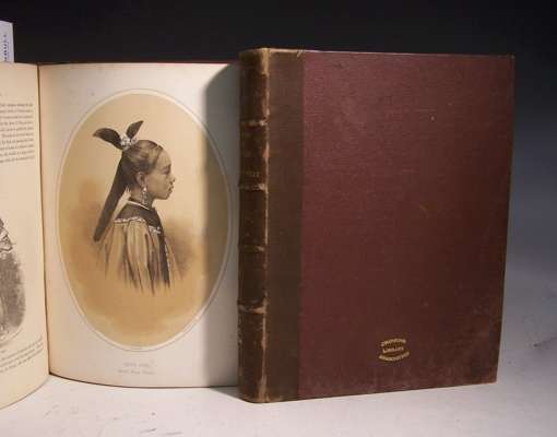 Narrative of the expedition of an American squadron to the China seas and Japan. Washington: A.O.P. Nicholson, 1856. First edition, volumes 1-2 (of 3), 4to, volume 1 with 5 maps and charts and 87 (of 89) lithographed plates, also without nude bathing plate; volume 2 with 4 tinted lithograph plates, 23 natural history plates, 16 metereological diagrams and 2 (? of 17) maps and charts, contemporary quarter brown morocco, some spotting and browning, small library blindstamp on titles, bookplates, and number on spines