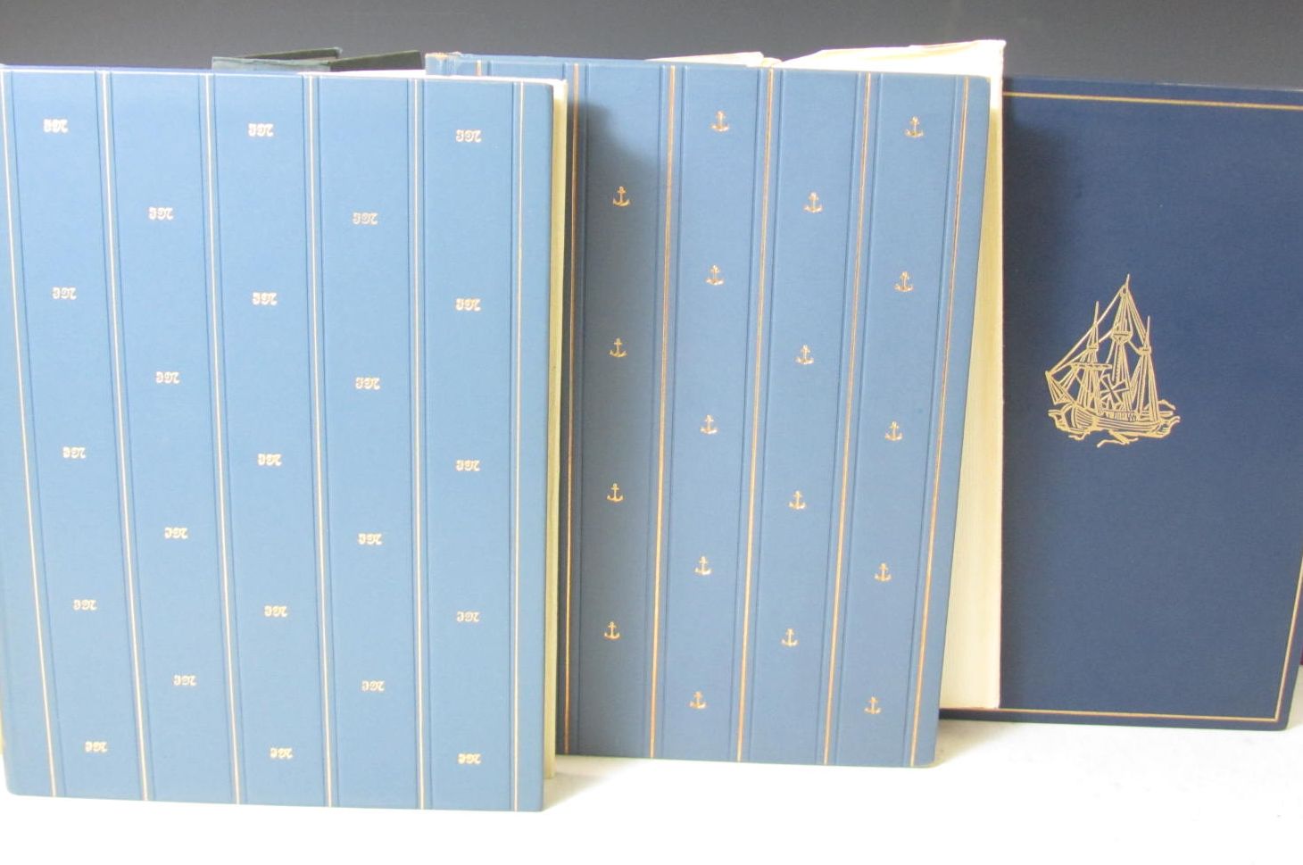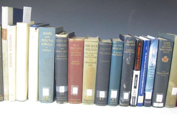 Indian shipping. A history of the sea-borne trade and maritime activity of the Indians from the earliest times. 1912; Boxer, C.R., editor The journal of Maarten Harpertszoon Tromp, anno 1639. 1930; Lawson, W. Pacific steamers. 1927; Murray, M. Ships and South Africa. 1933; Houldsworth, E.W.H. Deep-sea fishing and fishing boats. 1874; Herubel, M.A. Sea fisheries. 1912; Lee, C.E. The blue riband. [N.d.]; Chatterton, E.K. On the high seas. 1929; Villiers, A.J. Vanished fleets. 1931. Later cloth; Lecky, H.S. The King's ships. 1913. Volumes 1-3 (of 6), volumes 1-2 original cloth, volume 3 morocco, worn; Hodge, H. The battle cruisers at the action of the Falkland Islands. 1920. 4to, chromolithographed plates; Talbot-Booth, E.C. Ships of the British Merchant Navy. Passenger Lines. 1932; Chatterton, E.K. Sailing the seas, a survey of seafaring. 1931; Vogt, P. Fridtjof Nansen. Explorer, scientist, humanitarian. Oslo, 1961. 4to, blue morocco gilt, dust-jacket; Heyerdahl, T., Richter, S. and H.J. Riiser-Larsen Great Norwegian expeditions. Oslo, [c.1961]. 4to, blue morocco gilt, dust-jacket; Petersen, K. The saga of Norwegian shipping. Oslo, 1955. 4to, blue morocco gilt, dust-jacket; Bruijn, J.R. The Dutch navy of the 17th and 18th centuries. Columbia, 1993. Dust-jacket; Davidson, D.G. Scots and the sea. 2003. Dust-jacket; Stradling, R.A. The Armada of Flanders. 1992. Dust-jacket; most original cloth; and a quantity of similar books, Cruising Association Library gilt stamp to some upper covers, bookplates, some with small oval blindstamp to title; and a quantity of similar books; sold not subject to return (quantity)
