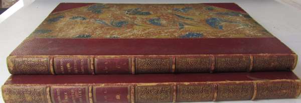 Histories of noble British families. London: William Pickering, 1846. Large folio, 2 volumes, 81 plates, engraved and lithographed, many hand-coloured, contemporary red half morocco, edges gilt, some rubbing to spines and boards, slight foxing to some plates and minor offsetting, volume 1 hinge cracking (2)