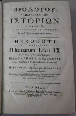 Historiarum libri ix. London: John Dunmore, Richard Chiswel, Benjamin Tooke & Thomas Sawbridge, 1679. Folio, folding map, collates [72], 708, [44], 33, [37], contemporary calf, rubbed, lacking a couple of blanks, occasional darkening, a few closed and marginal tears to map [Wing H1584] [ESTC R10164]