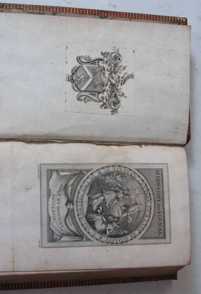 Midnight the signal. [London]: Dodsley, 1779. 8vo, 2 volumes, engraved title pages, contemporary red morocco gilt, bookplate to free-endpaper, spines and covers a little rubbed and soiled, titles and endpapers very slightly browned [ESTC T128232] (2)