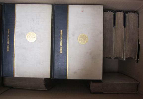 Volumes 10, 11, 16- 33, 35-37, 39-40, 52-56, 58-132, 134-35, 138-155, 8vo, plates, earlier volumes original two toned buckram cloth gilt, uncut, later volumes original blue cloth, with Cruising Association Library gilt stamp on upper cover or C.A.L. book label, some with small library blindstamp to titles, some bindings lightly dust-soiled; and 4 unnumbered volumes: A Descriptive catalogue of the naval manuscripts in the Pepysian Library (124)