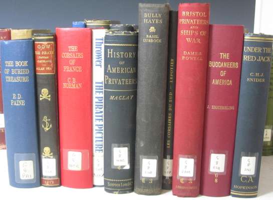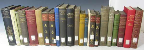 A history of American privateers. 1900; Powell, J.W.D. Bristol privateers and ships of war. Bristol, 1930; Williams, Gomer History of the Liverpool privateers. 1897; Burney, J. History of the Buccaneers of America. 1912; Chapin, H.M. Privateer ships and sailors. Toulon, 1926; Verrill, A.H. The real story of the pirate. New York, 1923; Masefield, John On the Spanish Main. 1906; Fea, Allan The real Captain Cleveland. 1912; Dalton, C.N. The real Captain Kidd. 1911; Haring, C.H. The Buccaneers of the West Indies in the XVII century. [1910]; Statham, E.P. Privateers and privateering. 1910; Snider, C.H.J. Under the Red Jack. 1928; Hurd, A. The reign of the pirates. 1925; Wilkins, H.T. Captain Kidd and his skeleton island. 1935; Esquemeling, J. The Buccaneers of America. 1911; Fuller, B. Pirate harbours and their secrets, 1935; Wycherley, G. Buccaneers of the Pacific. [1929]; Pyle, H. The Buccaneers and marooners of America. 1892; Cooper-Prichard. A.H. The Buccaneers. 1927; Rogers, Woodes Life aboard a British privateer. 1894; Clune, F. The pirates of the Brig Cyprus. 1962; original cloth, Cruising Association Library gilt stamp on upper cover, library label and blindstamp; and 12 others, similar; sold not subject to return (33)