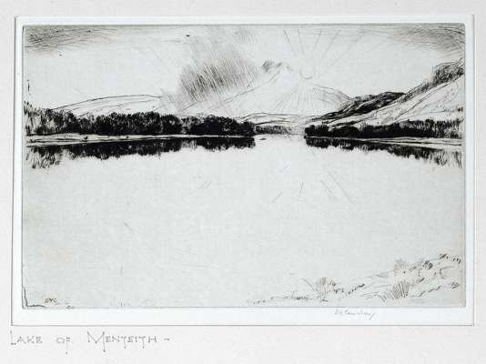 A portfolio of six drawings by George Chinnery, 1774-1852, depicting scenes of life in China in the early nineteenth century. London: Curwen Studio, [1960], illustrations; Hopkinson, Smith F. In Thackeray's London. Doubleday, Page & Co: Garden City, New York, [1913]. Portfolio of images only, 21 prints, some slight foxing. Cunninghame Graham, R.B. and Cameron, Sir D.Y. The District of Menteith. Stirling: Eneas Mackay, 1930 (Edition de Luxe). Folio, in presentation case, contemporary quarter calf, dust-jacket, signed by the author and illustrator with separate hand written letter from illustrator to Campbell Dodgson, number 22 of 250 copies, contains one original etching by Cameron and 10 reproductions of wash drawings (3)