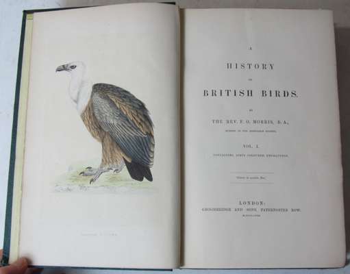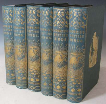 British birds. London: Groombridge and Sons, 1863. 8vo, 6 volumes, 358 hand-coloured plates, original blue-green cloth gilt, spine bases of first three volumes a little rubbed, spines very slightly faded, occasional annotations in coloured pencil, plate 96 in volume 4 a little smudged, small closed tear to margin of page 262 of volume 4 with no loss of text (6)