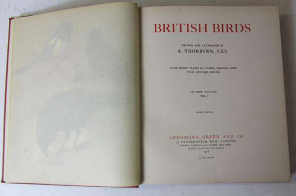 British birds. London: Longmans, Green and Co., 1916. Volumes 1-2 second edition, volumes 3-4 first edition, 4to, 4 volumes, 80 coloured plates, original red cloth, spines faded, some slight damp-staining to boards (4)