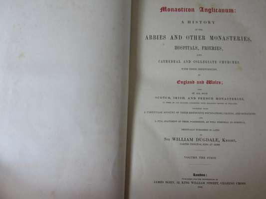 Monasticon Anglicanum. London: James Bohn, 1846. Large 4to, 6 volumes in 8, portrait, engraved title, 242 plates, contemporary black half morocco, t.e.g., spines a little faded and rubbed, occasional spotting (8)