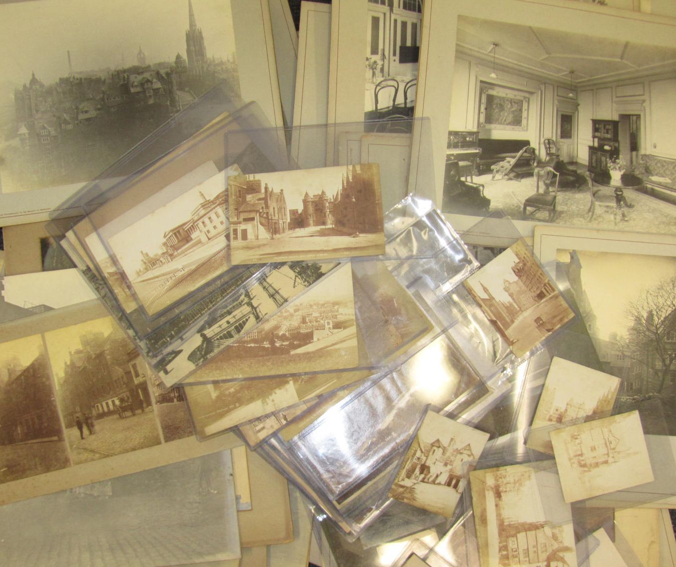 31 silver prints of Edinburgh mounted on thick board with F.C. Inglis's details on board verso, most 22 x 28cm., two touched up with caption added, 23 other photographs mounted on board, 45 unmounted photographs of Edinburgh, mainly albumen prints, [c.1870-1900], 6 by "A.I." with captions in the negatives, 3 by James Valentine, 3 by "A.B.", and a couple of other items (101)