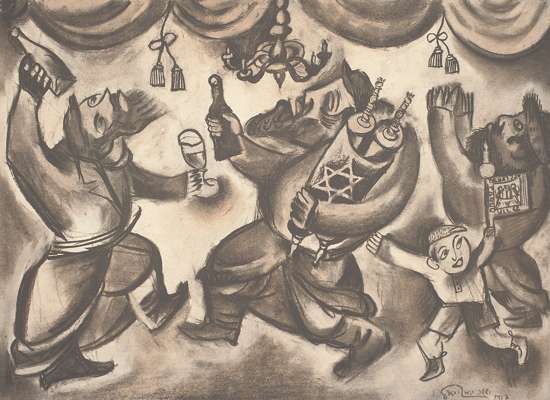 Note: Issachar Ryback depicts scenes from the lives of the Jewish community in his shtetl, or small town, in Ukraine, before it was destroyed by the pogroms which followed the end of the First World War. Ryback is often compared with Chagall, and illustrates many of the same subjects that Chagall studied in his early years. A copy of the book is described in an Israel Museum exhibition catalogue, Tradition and Revolution: The Jewish Renaissance in Russian Avant-Garde Art, 1912-1928, edited by Ruth Apter-Gabriel.