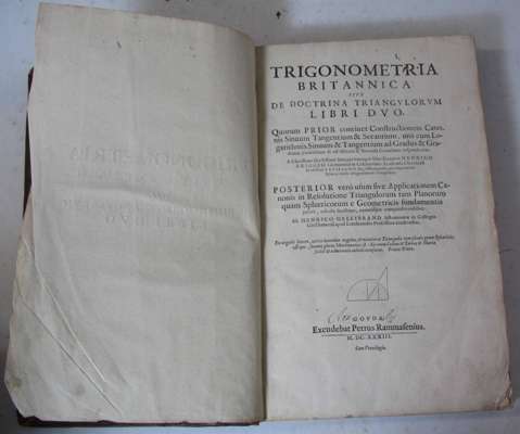 Trigonometria Britannica... Gouda: Petrus Rammasenius, 1633. First edition, folio, [8], contemporary calf, spine rebacked, lower cover slightly rubbed, a few wormholes running through the work with loss of a few letters and numbers per page, endpapers, title and half-title a little creased at edges and dust-soiled, Cortachy Castle bookplate