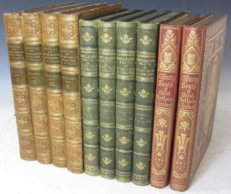 The baronial and ecclesiastical antiquities of Scotland. Edinburgh: published by the author, [1848-1852]. 4to, 4 volumes, 240 plates, contemporary calf gilt, lower board of volume 1 and upper board of volume 4 detached, head of spines a little chipped, slight foxing; Morris, F.O. A series of picturesque views of seats of the noblemen and gentlemen of Great Britain and Ireland. London: William Mackenzie, [ca. 1870] 4to, 6 volumes, colour plates, volumes 1-4 in green half morocco and volumes 5-6 in original publisher's red cloth gilt, spines of volumes 1-4 a little faded, boards and corners slightly rubbed (10)