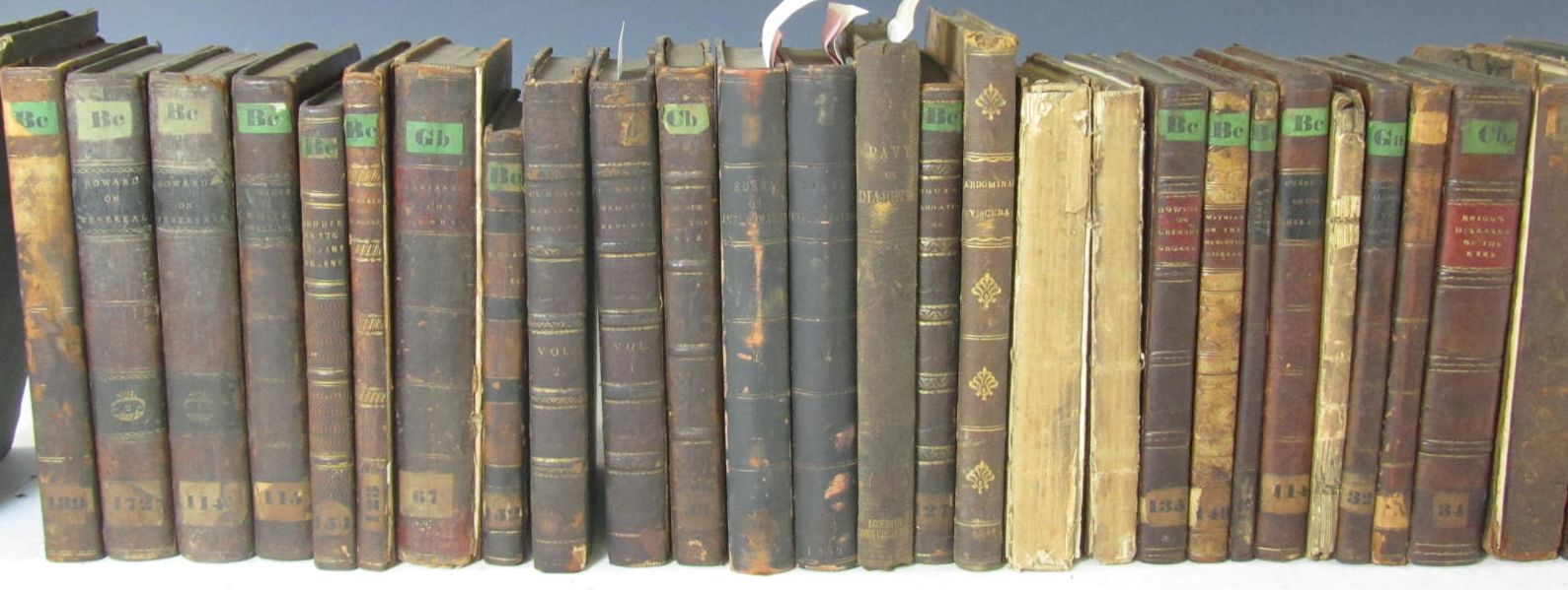 Dissertations on inflammation. Glasgow, 1800. 2 volumes, half calf; Russell, James A treatise on the morbid affection of the knee joint. Edinburgh, 1802. 3 engraved plates, calf; Heberden, William Commentaries on the history and cure of diseases. 1802. Half calf, worn, covers detached; Cuvier, Baron G. Lectures on comparative anatomy. 1802. 2 volumes, 7 folding tables, calf, neatly rebacked and repaired; Currie, James Medical reports, on the effects of water. Liverpool, 1804. 2 volumes, half calf, one cover detached; Young, Samuel An inquiry into the nature and action of cancer. 1805. Half calf; Crowther, Bryan Practical observations on the disease of the joints. 1808. Calf; Rees, George Practical observations on disorders of the stomach. 1811. Half calf; Thomson, John Report of observations made in the British military hospitals in Belgium after the battle of Waterloo. Edinburgh, 1816. 8vo, original boards, uncut, covers detached; Walker, Richard Memoirs of medicine. 1799. 8vo, original boards, uncut, rubbed; Bell, Benjamin A system of surgery. Edinburgh, 1801. Seventh edition, 2 volumes, engraved frontispiece, contemporary calf, spotted; Abernethy, John Surgical observations. 1804. Calf, spotted; Clarke, Edward G. The modern practice of physic. 1805. Calf; Howard, John Practical observations on the natural history and cure of the venereal disease. 1806. Second edition, 2 volumes, calf; Scarpa, Antonio Practical observations on the principal disease of the eyes. 1806. 3 folding plates, half calf; Halliday, Andrew Observations on emphysema. 1807. Calf; Scarpa, Antonio A treatise on the anatomy, pathology and surgical treatment of aneurism. Edinburgh, 1808. 2 engraved plates, half calf, worn; Russell, James A treatise on scrofula. Edinburgh, 1808. Half calf; Mathias, Andrew The mercurial disease. 1810. Half calf; Clarke, Arthur An essay on bathing. Dublin, 1813. Frontispiece, original boards, worn; Corvisart, J.N. A treatise on the diseases and organic lesions of the heart. 1813. Calf, joints split; Pemberton, C.R. A practical treatise on various disease of the abdominal viscera. 1814. Half calf; Saunders, J.C. A treatise on some practical points relating to the diseases of the eye. 1816. Frontispiece and 7 coloured plates, half calf, spotted and soiled, rubbed; Roux, P.J. A narrative of a journey to London in 1814. 1816. Half calf; Howship, John Practical observations on the diseases of the urinary organs. 1816. Half calf; Marcet, Alexander An essay on the chemical history and medical treatment of calculous disorders. 1817. Half calf; Johnson, James The influence of tropical climates on European constitutions. 1818. Lacks upper board, title soiled; Blackadder, H.H. Observations on phagedaena gangraenosa. Edinburgh, 1818. Half calf; White,W. Further observations on strictures of the rectum. Bath, 1822. 1 engraved plate, half calf; Earle, Henry Practical observations in surgery. 1823. 3 engraved plates, quarter cloth; Baillie, Matthew The works. 1825. 2 volumes, 8vo, engraved frontispiece, half calf, one title loose and frayed, worn, lacks spines; Johnson, James An essay on morbid sensibility. 1827. Original boards, uncut; Marshall, Henry Hints to young medical officers of the army. 1828. Original boards, uncut, worn, one cover detached; Macilwain, G. Surgical observations. 1830. Half calf; Blake, Andrew A practical essay on the disease generally known under the denomination of delirium tremens. 1830. Half calf; Liston, Robert Elements of surgery. 1831-32. 3 parts in one volume half calf; Brodie, B.C. Lectures on the diseases of the urinary organs. 1832. Half calf, some scoring; Laennec, R.T.H. A treatise on the disease of the chest. 1834. 2 engraved plates, half calf, worn; Marshall, Henry On the enlisting, discharging and pensioning of soldiers. Edinburgh, 1839. Quarter cloth, lacks spine, cover detached; James, J.H. On the distinctive characters of external inflammations. 1847. Original cloth; Teale, T.P. On amputation. 1848. Original cloth; Birkett, John The diseases of the breast. 1850. 12 lithographed plates, some hand-coloured, original cloth; Pavy, F.W. Researches on nature and treatment of diabetes. 1862; Mac Cormac, W. Notes and recollections of an ambulance surgeon. 1871. Presentation copy, inscribed by the author, original cloth; all with RCSI library stamp to title, most with some spotting or soiling, most rubbed or worn; sold not subject to return (49)