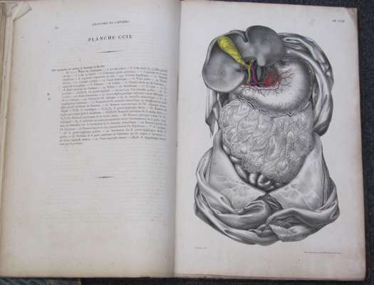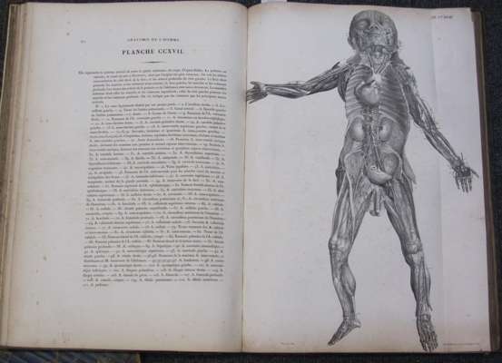 Anatomie de l'homme. Paris: C. de Lasteyrie, 1821. Folio, volumes 1, 4 and 5 (of 5), lithographed plates 1-56 and 187-300 only, a few with hand-colouring, a few laid down on linen, spotting, occasionally heavy, contemporary half roan, worn, volumes 4 and 5 lacking title, 3 plates with marginal repairs
