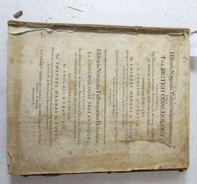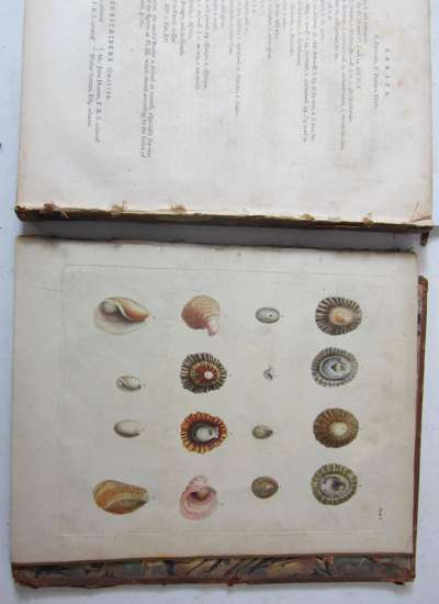 Historia naturalis testaceorum Britanniae, or the British conchology. London: for the author, 1778. First edition, 4to, 17 hand-coloured plates, contemporary half calf, title very soiled and with strip torn away at head with some loss of text, lacks upper board