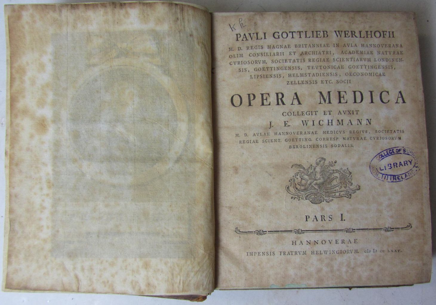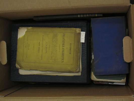 Entwicklungsgeschichte des Hunde-Eies. Braunschweig, 1845. 4to, 15 lithographed plates, morocco, some spotting, worn; Luschka, Hubert Die Adergeflechte des Menschlichen Gehirnes. Berlin, 1855. 4to, 4 plates, 3 hand-coloured, original boards, some dampstaining, rubbed; Heusinger, Carl Friedrich Specimen malae conformationis orgnaorum auditus humani. Jena, 1824. Folio, 3 engraved plates, original wrappers, plates spotted and loose, spine worn; covers detached; Gudden, Bernard von Experimental-Untersuchungen über das Schaedelwachsthum. Munich, 1874. 4to, 11 plates, original cloth-backed boards, binding worn and soiled; Siton, J.B. Miscellanea medico curiosa. Cologne, J.W. Friessem, 1677. 4to, contemporary calf, cover detached; Braune, W. & A. Trübiger Die venen der Meschlichen Hand. Leipzig, 1873. 4to, plates, quarter cloth, some spotting, rubbed; Rüdinger, Dr. Die anatomie der Menschlichen Gehirn-Nerven. Munich, 1868. 8vo, 13 plates, original quarter cloth, worn, most with RCSI stamp on titles, spotting; Knoblauch, Alexander De neuromate et gangliis accessoriis veris. Frankfurt, 1843. 4to., 4 folding plates, morocco; Froriep, August Die Lagebezhiehungen zwischen Grosshirn und Schädeldach. Leipzig, 1897. Large folio, plates, original quarter cloth, boards dust-soiled; Andersch, C.S. Tracatio anatomico-physiologica de nervis humani corporis aliquibus. Königsberg: A. Fasch, 1787. 8vo, 2 folding plates, disbound, uncut, title soiled; Welhof, Paul Gottlieb Opera medica. Hannover: Fratrum Helwingiorum, 1775. 4to, engraved frontispiece portrait, contemporary calf, worn, upper cover detached; and many others, all with RCSI library stamp on title, most spotted, some dust-soiling, bindings worn or rubbed; sold not subject to return (a quantity)