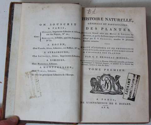 Histoire naturelle, génerale et particulière des plantes. Paris: F. Dufart, an x. Volumes 1-6 part 1 and 7-11; Oiseaux. Volumes 1-22; Mollusques. Volume 6 only; Crustacés et des insectes. 14 volumes; Quadrupèdes. Volumes 32-36, 8vo, numerous engraved plates in two states, one set printed in colour, some finished by hand, calf, plate margins slightly discoloured, many boards detached, some spines lacking; and other volumes from the same set; sold not subject to return (50)