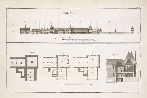 Mémoires sur les hôpitaux de Paris. Paris: P.D. Pierres, 1788. First edition, 4to, half-title, 15 folding plates, 2 folding tables, modern half calf, uncut, slightly spotted, no library stamps