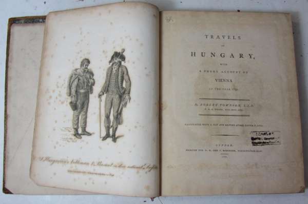 Travels in Hungary, with a short account of Vienna in the year 1793. London: G.G. & J. Robinson, 1797. First edition, 4to., 16 plates, hand-coloured folding map, calf, some spotting, library stamp on title, worn, lacks lower board
