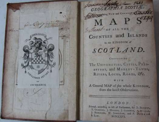 Geographia Scotiae, being new and correct maps of all the counties and islands in the Kingdom of Scotland. London: D. Browne, T. Osborne &c., 1756. 8vo, 33 double-page engraved maps, contemporary calf, bookplate of Alexander Stuart of Inchbreck, neat repair to inner margin of title, contemporary calf, rubbed, joints split, 13 maps with short split at fold