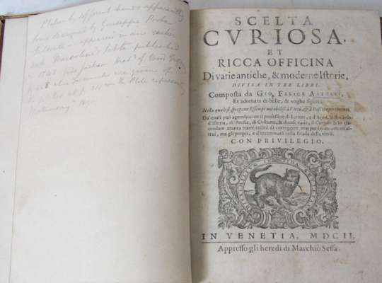 Scelta curiosa et ricca officiana... Venice: Marchiò Seffa, [1602?] 4to, woodcut vignettes and initials, later calf with tooling in gilt and blind, g.e., some rubbing to spine and joints, some slight darkening