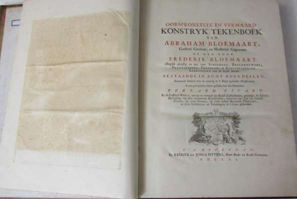 Oorspronkelyk en vermaard konstryk tekenboek. Amsterdam: Reiner and Joshua Ottens, 1740. Folio, coloured engraved frontispiece, title in red and black, coloured engraved portrait, engraved dedication, 172 engraved plates (7 coloured orange), contemporary half calf, some rubbing and slight chipping to boards and spine