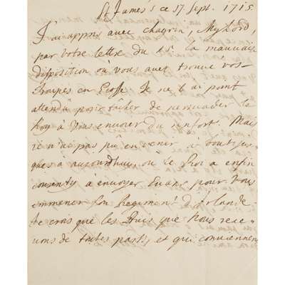LETTER SIGNED, "R. LEYCESTER", AND SUBSCRIBED, ONE PAGE, THE TEXT IN FRENCH,