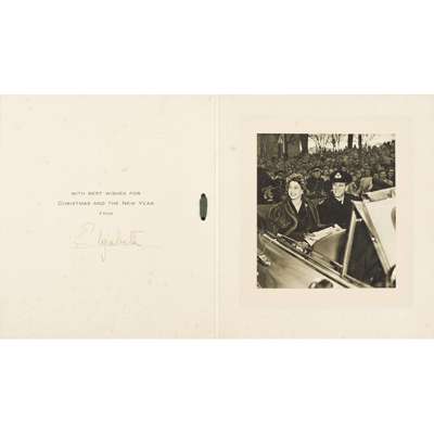 CHRISTMAS CARD SIGNED AS PRINCESS "ELIZABETH", WITH BLACK & WHITE PHOTOGRAPH