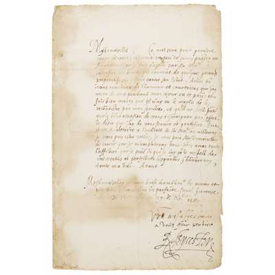 CATHERINE DE MEDICIS (1519-1589, QUEEN OF FRANCE) SALEROOM **NOTICE: SIGNED BUT LETTER NOT AUTOGRAPH**