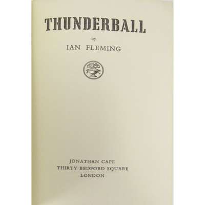 Thunderball. London: Jonathan Cape, 1961. 8vo, original cloth, dust-jacket not price-clipped; [Idem] On Her Majesty's Secret Service. London: Jonathan Cape, 1963. 8vo, original cloth, dust-jacket not price-clipped but torn and chipped, a little bumping to covers; [Idem] The Man with the Golden Gun. London: Jonathan Cape, 1965. 8vo, original cloth, dust-jacket not price-clipped (3)