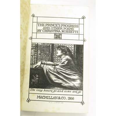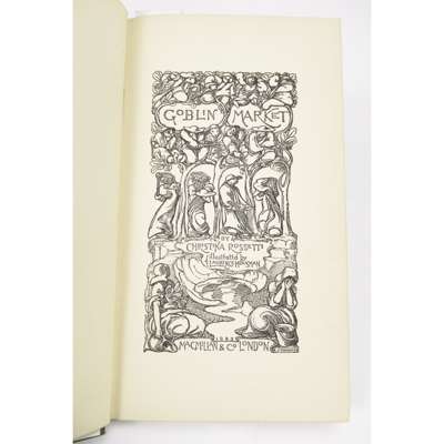 London: Macmillan, 1866. First edition, 8vo, frontispiece and additional title-page by Dante Gabriel Rossetti, with envelope addressed in D.G. Rossetti's hand to Sir John Skelton attached to front endpapers, original green cloth gilt, slightly spotted; [Idem] Goblin Market. London: Macmillan & Co., 1893. 12mo, woodcuts by Laurence Housman, original decorative green cloth gilt (2)