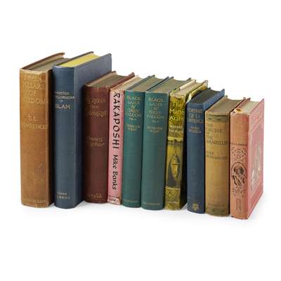 London: printed for the Society. June 1806. No. 2 (only), [iv], pp.88; The Society for Bettering the Condition and Increasing the Comforts of the Poor. The Twenty-Eighth Report. London, Dec. 1806. [iv], pp. 141-176, 101-132; The Twenty-Ninth Report. London, Nov. 1807, [iv], 177-210, 133-170; The Thirtieth Report. Dec. 1807, [iv], [viii], 211-241, 171-234, [vi - index]; The Thirty Second Report. 1811, [viii], 65-114;37-76; Bernard, Thomas The New School. London: for the Society for Bettering the Condition of the Poor. Dec. 1809, [viii], 111, [iii]; contemporary quarter calf, rubbed, upper board detached; Lawrence, T.E. Seven Pillars of Wisdom, 1935. 4to, plates, maps, original buckram gilt, spine lightly faded, owner's name to front free endpaper; Vischer, Hanns Across the Sahara from Tripoli to Bornu. 1910. 8vo, plates, folding map, (plate misplaced at p.8) original cloth, upper hinge weak; Muhlhauser, G.H.P. The Cruise of the Amaryllis. 1924. First edition, 8vo, plates, original cloth; Francke, A.H. A History of Western Tibet. S.W. Partridge, [1907], original pictorial cloth; 8vo, plates, maps; Gibb, H.A.R. & J.H. Kramers Shorter Encyclopaedia of Islam. Leiden, 1933. 8vo, original cloth; Thesiger, W. The Marsh Arabs. 1964. First edition, dust-jacket a bit frayed; Richards, V. Portrait of T.E. Lawrence. 1936, original cloth; Banks, M. Rakaposhi. 1959. First edition, dustwrapper; West, Rebecca Black Lamb and Grey Falcon. 1946, 2 volumes, original cloth sold not subject to return (11)