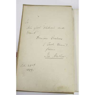 London: W. Thacker & Co., 1899. First edition, 8vo, inscribed to Duncan Graham, "Larbh Dhonn", from the author, frontispiece, folding map, numerous illustrations in text, publisher's catalogue bound at rear, original pictorial cloth, some slight soiling