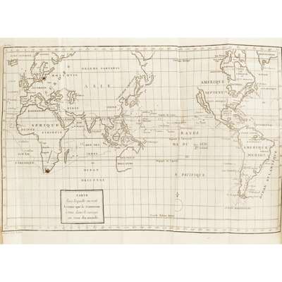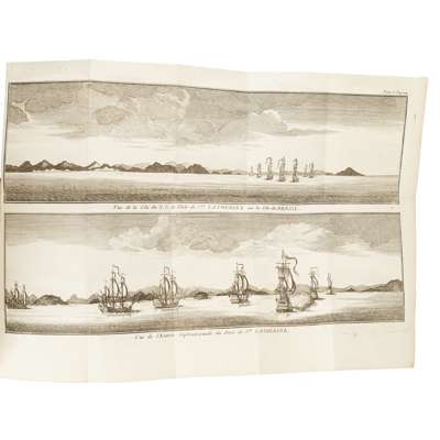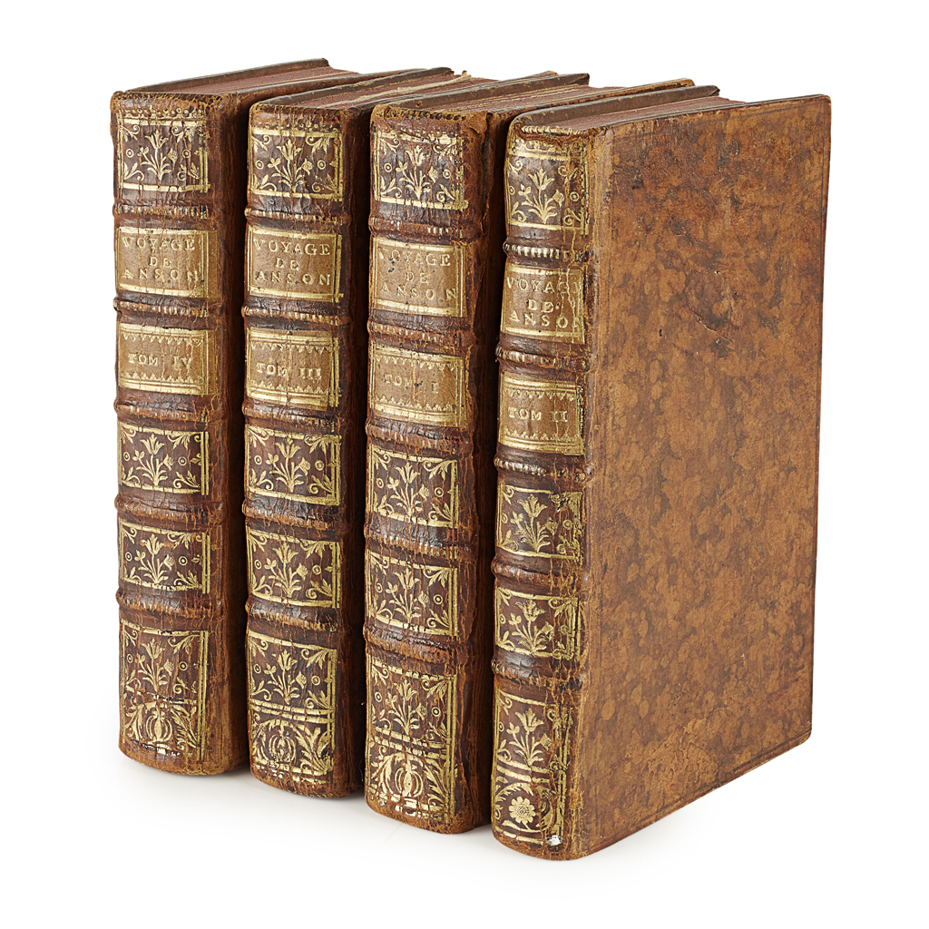 Paris: Quillau, Quillau, Delormel, Le Loup, 1750. First French edition, 3 volumes in 4 volumes [vol. 2 being in 2 parts], 12mo, titles printed in red and black, 35 folding engraved plates and maps, contemporary calf, spines gilt, half-titles, early ownership inscription at foot of titles, a few plates and maps with short tear at fold