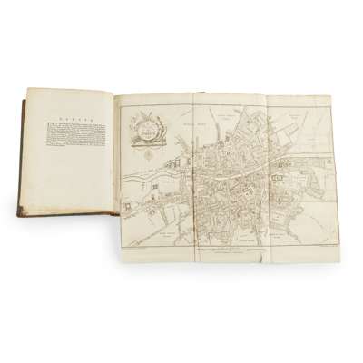 Dublin: for J. Williams, 1780. First edition, 4to, [2 (engraved title)]; xii, [2 (contents)]; 118; engraved title, 29 engraved plates (1 folding) and 2 folding plans, 19th century half calf with green cloth boards, a few small spots or stains, head of spine slightly rubbed, upper joint split at base