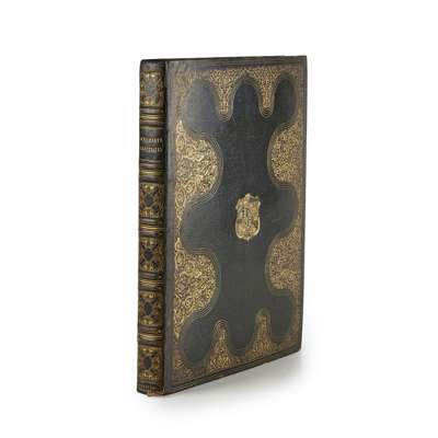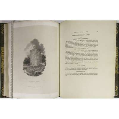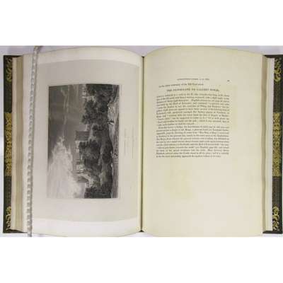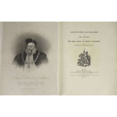 Priory, and Church of Kenilworth. Chiswick: printed by C. Whittingham, for Merridew and Son, Coventry [&c], 1821. First edition, 4to, large paper copy, 18 Proof plates on India Paper, 1 on ordinary paper, half-title, contemporary blue morocco gilt by Lawson & Lewis, 5 Richmond Buildings, Dean Street Soho, with their ticket, g.e., gilt morocco doublures, elaborate gilt arms (unidentified) on sides, joints a little cracked, small repairs at head of joints