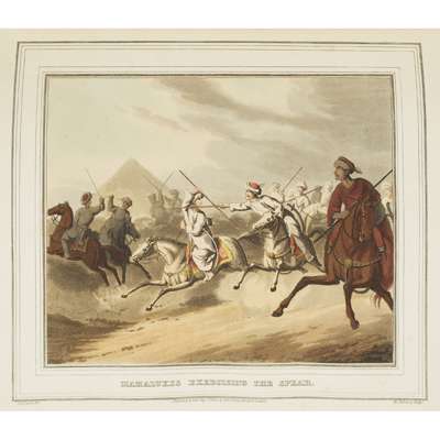 Containing One Hundred Plates, with a Supplement of New South Wales. London: E. Orme, 1814. First edition, 2 parts in one volume, 4to, 281 x 215mm., 110 hand-coloured aquatint plates, armorial bookplate of Mr Robert. Maxwell, contemporary green morocco gilt, spine in compartments gilt, index leaf at end, small stains to one plate, one text leaf with 3 cm closed tear, occasional light dust-soiling