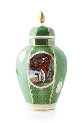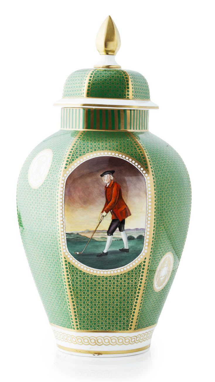 SPODE PORCELAIN COVERED VASE, OF GOLFING INTEREST