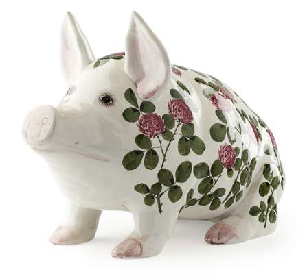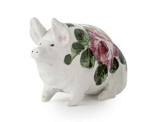 A SMALL 'CABBAGE ROSES' PIG FIGURE, CIRCA 1900